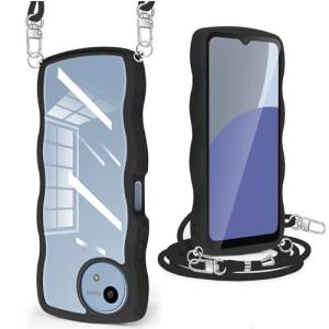 AQUOS R9/R10 ケース クリア ショルダー ストラップ付き SH-51F/SH-51E カバー かわいい 波状フレーム 人気 耐衝撃