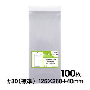 OPP袋 125×260 テープ付 100枚 30ミクロン厚(標準) 125×260+40mm 透明袋 国産