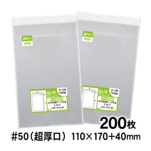 OPP袋 A6 テープ付 200枚 50ミクロン厚(超厚口) 110×170+40mm 透明袋 国産
