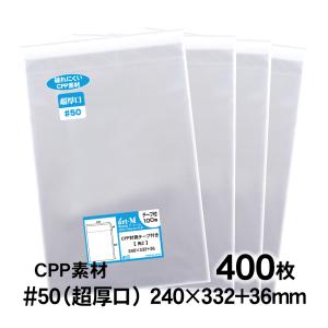 CPP袋 角2 テープ付 400枚 50ミクロン厚(超厚口) 240×332+36mm 透明袋 国産 二つ折り発送