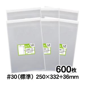 OPP袋 角2ワイド 1cm巾広 テープ付 600枚 30ミクロン厚(標準) 250×332+36mm 透明袋 国産 二つ折り発送