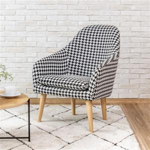 ヤマダオリジナル 1人用ソファ「YS110038」布 アイボリー/ブラック 千鳥柄 アームチェア パーソナルチェア【※AR対応】