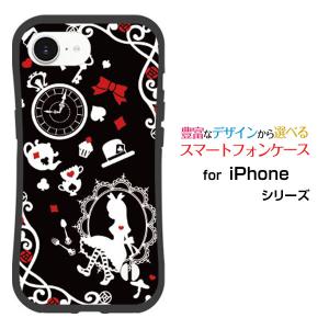 スマホケース iPhone 16e アイフォン シックスティーンイー 耐衝撃 ハイブリッドケース ストラップホール付 鏡の国のアリス ブラック