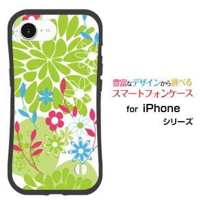 スマホケース iPhone 16e 耐衝撃 ハイブリッドケース ストラップホール付 花とグリーン 春 花柄 フラワー ボタニカル柄 グリーン 緑