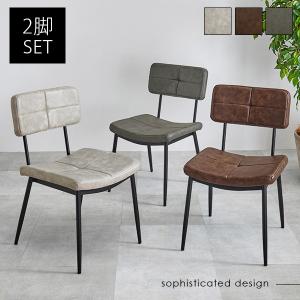ダイニングチェア 2脚セット おしゃれ チェア チェアー 椅子 北欧 アイアン 食卓椅子 モダン 合成皮革 レザー調 ヴィンテージ風 ステッチ入り
