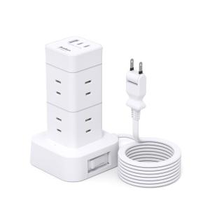 Addtam 電源タップ タワー 1m 延長コード8個AC 3USBポート付き コンセント 一括スイッチ テーブル 蛸