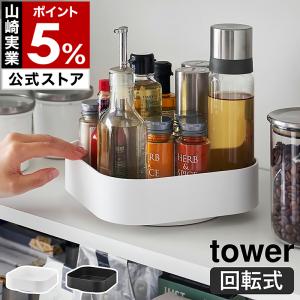 特典付[ 回転式収納ラック タワー スクエア ]山崎実業 tower 調味料 ラック 入れ 卓上 スパイスラック 調味料ケース yamazaki ブラック ホワイト 2198 2199