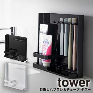 目隠し歯ブラシ&チューブスタンド タワー 山崎実業 tower 収納 目隠し収納 電動歯ブラシ 替えブラシ ホワイト ブラック 3505 3506