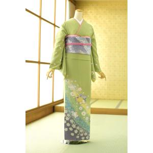 色留袖レンタル 正絹 miit-93 結婚式 披露宴 パーティー 式典 表彰式 お呼ばれ 食事会 列席 親族 姉 妹 着物 衣装 衣裳 高級 緑 グリーン フルセット