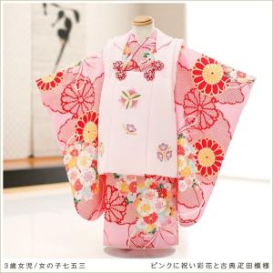 3歳女の子 七五三レンタル 被布セット f1184 子供着物 人気 かわいい 753 三歳 ピンクに祝い彩花と古典疋田模様