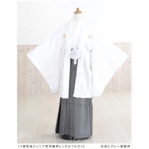 小学校卒業式 男 袴レンタル「白地にグレー銀縞袴」jmo009〔12歳〕〔紋付レンタル〕〔結婚式〕〔12歳〕〔着物レンタル〕〔150cm/155cm〕