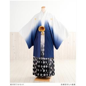 卒業式 袴 レンタル 男 結婚式 mo035 紋付袴 羽織袴「白紺ぼかし×金紋」フルセット 人気 大学