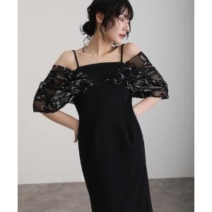ドレス 結婚式二次会パーティードレスリボンタイトフェザーフラワーラメ糸レイヤードミモレ丈&袖ありセレモニーフォーマルオケージョンドレス同窓会成人式 お