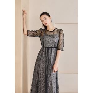 ドレス シアースリープ 結婚式 パーティー ボタニカル レースドレス(S,M,L,XL)