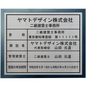 二級建築士事務所登録票 ステンレスプレート ブルー色額入り おしゃれな二級建築士事務所登録票