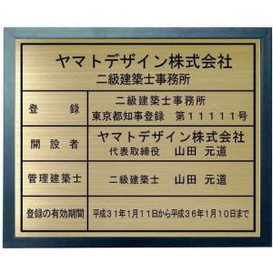 二級建築士事務所登録票 【真鍮プレート ブルー色額入り カッティングシート加工】おしゃれな二級建築士事務所登録票