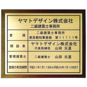 二級建築士事務所登録票 【真鍮プレート 木地色額入り】おしゃれな二級建築士事務所登録票