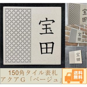 伝統文様の表札 和柄 シンプル 150角 アクアGタイル表札 「ベージュ」 麻の葉 七宝 青海波 紗綾形 市松 唐草 追加マグネット可