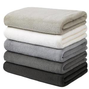 Oseamaid バスタオル 大判 5色5 枚セット マイクロファイバー タオル 吸水速乾抗菌防臭(白い グレー ライトグレー ミディアムグレー