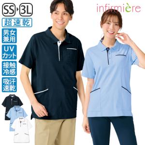 速乾 接触冷感 UVカット ポケット付き 半袖 メンズ 介護 保育士 看護師 医療 アンファミエ 2倍速く乾く超速乾!さらさらドライポロシャツ(男女兼用)