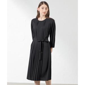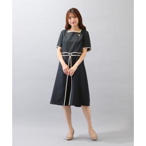 ワンピース 「美シルエットワンピ」「接触冷感/防シワ」パイピングリボンワンピース