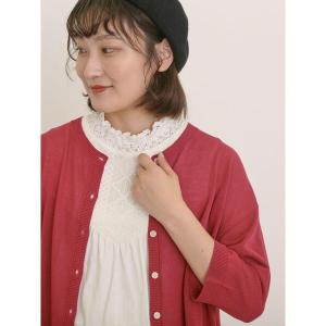 カーディガン 「接触冷感」花刺繍七分袖クルーネックカーディガン レディース