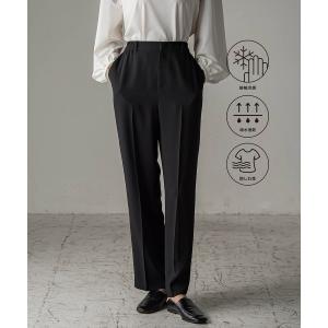 スラックス パンツ 「接触冷感 / 手洗い可能」アセテート混 バックサテン テーパード パンツ レディース