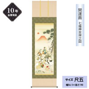掛け軸 七福神吉祥之図 掛軸 開運画 尺5 長江 桂舟 床の間 和室 KZ2D5-090 厄除け図 赤富士 丹頂鶴 桐箱入り