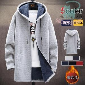 カーディガン ロング丈 裏起毛パーカー メンズ 暖かい スウェットパーカー 裏起毛 長袖 ニット パーカー 冬 ス 暖かい お出かけ 無地