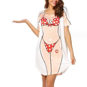 ロングTシャツ レディース半袖パジャマ 親友ギフト ネタTシャツ 団体服 体型カバー ビーチ ビキニ ティーシャツ パーティー服