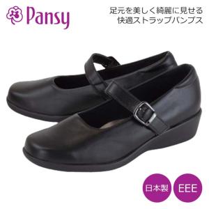 パンジー 靴 パンプス 4073 レディース ストラップ 婦人靴 幅広 EEE 3E 外反母趾 日本製 国産 軽い 抗菌 スーツ 通勤 仕事 出張 営業 冠婚葬祭 定番 PansyOffice