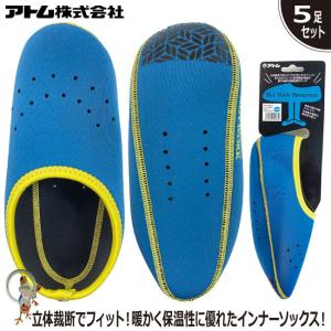 防寒靴下 ソックス アトム 2962-2 HOT WORK インナーソックス ホームカバー シアン 男性用 下履き靴下 防寒 特価5足セット 冬場の軽作業 アウトドア 屋内履き