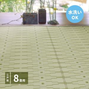 洗える い草風カーペット 柳 江戸間8畳 348×352 花ござ 洗えるラグ 柄上敷き PP素材で水に強い 屋内 屋外 レジャーシート 和風 和モダン シンプル 代引不可