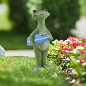 カエルの像 置物 卓上 カエルの置物 リビングルーム パティオ 屋内 屋外用 ブルー サーフボード