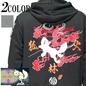 今昔 こんじゃく 狐 和柄 パーカー メンズ 風林火山 風林火狐 きつね 参丸一 KJ-29049