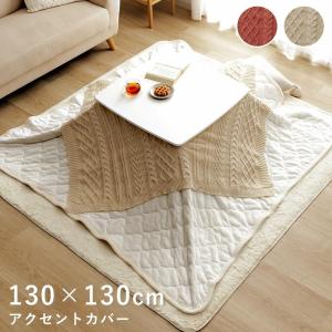 こたつ布団 カバー 上掛け アクセントカバー アラン 約130×130cm サロン 正方形 洗える コタツ アイボリー オレンジ ブランケット 膝掛け