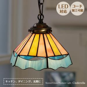 お洒落 ステンドグラスペンダントライト ポイント利用 ガラス アンティーク レトロ モダン LED対応 天井照明 Cinderella シンデレラ ピンク