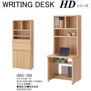 ライティングデスク HDC-75D シンプル リビング 省スペース 幅75cm 高さ180cm 在宅ワーク 完成品 キャナルオーク色