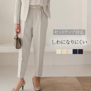 オケージョン テーパードパンツ レディース センタープレス パンツ テーパード 春 秋 セットアップ 可能 きれいめ ストレッチ ウエストゴム 白 黒