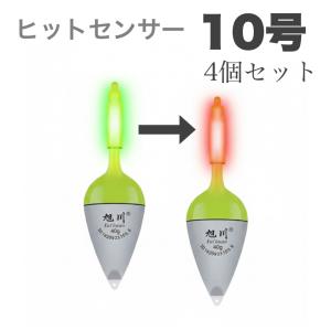 最新型ヒットセンサー電気ウキ10号 4個セット 電池付き変色 緑 赤 40g