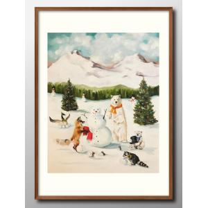ポスター イギリス クリスマスを楽しむ動物たち 北欧 絵画 インテリア A3サイズ アート 新築祝い ギフト 模様替え インテリア 管理ID:14224