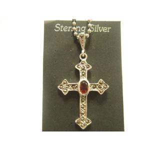 横浜最新 シルバーSILVER925銀ペンダントクロス ガーネット風♪十字架マーカサイト 6.2g メンズレディース 送料無料ネックレス34a