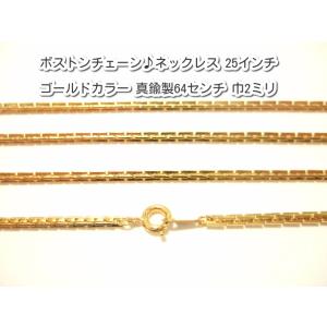 横浜最新 魅惑のボストンチェーン♪ネックレス ゴールドカラー 真鍮製64センチ 巾2ミリ 5本セット メンズレディース 送料220円97