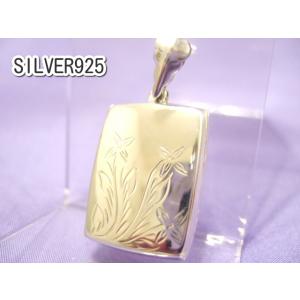 横浜最新 シルバーSILVER925銀 魅惑の鏡面仕上げ♪ロケットペンダント角形大 花模様 6.6gメンズレディース 送料290円ネックレス19