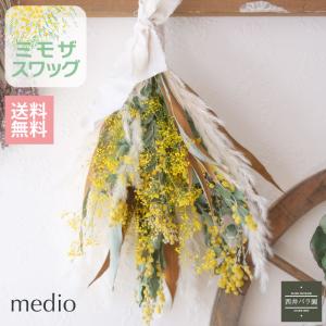 ミモザ ドライフラワー スワッグ プリザーブドフラワー 花束 玄関 インテリア 壁飾り お祝い プレゼント メディオ