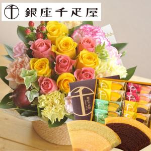 花とスイーツのセット ローズガーデンアレンジと【銀座千疋屋】フルーツクーヘンギフトセット 誕生日 記念日 お祝い花 即日発送 あすつく FKAA