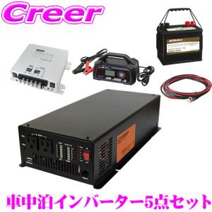 CLEZEED 車中泊5点セット 1500W 正弦波インバーター バッテリー 充電器 走行充電器 ケーブル