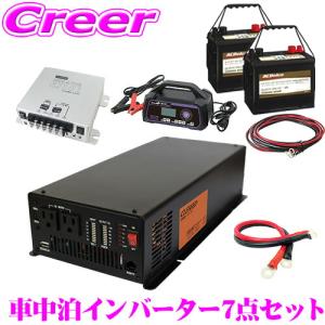 CLEZEED 車中泊7点セット 1500W 正弦波インバーター バッテリー2個 充電器 走行充電器 ケーブル