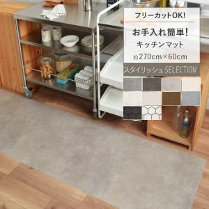 キッチンマット 玄関マット 270 × 60 拭ける 撥水 おしゃれ スタイリッシュ コンクリート モルタル レザー 大理石 かっこいい モダン シンプル PVC