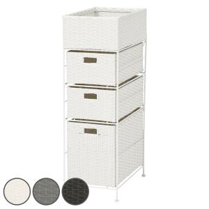 ランドリーチェスト 3段 幅25.5cm かご付 スチール ポリエチレン ( ラタン調 ランドリー チェスト ラック 防水 アジアン 収納 かご )